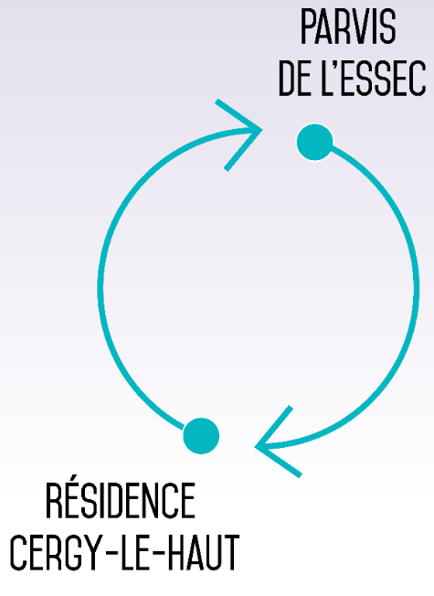 ESSEC students can hop in ESSEC shuttles in evenings for free to return to ESSEC residences or such nearby residences as well as the Cergy-Préfecture train station. Just indicate to the driver the name of your destination.