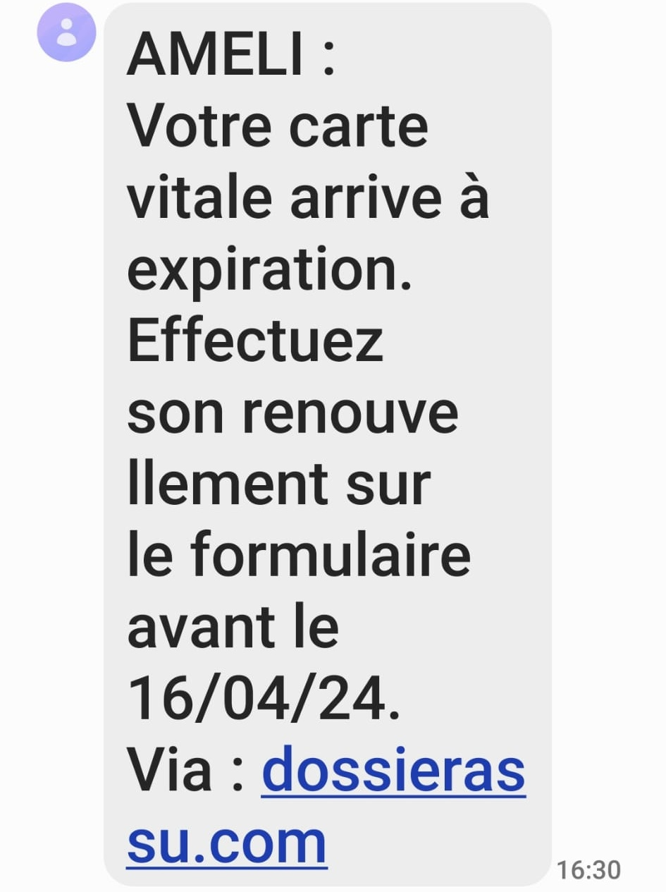Phishing attempts regarding the carte vitale or the Ameli account are unfortunately getting more frequent. The messages sent by the fraudster are realistic and emphasize on the urgency.