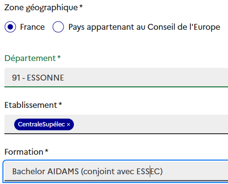 Etablissement : Choisir GIF-SUR-YVETTE, puis CentraleSupélec